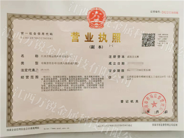 公司擁有注冊資金200萬元,員工總數232名,擁有兩條的機械化操作流水線和全套靜電噴涂自動生產流水線,所有產品全由圖紙控制,模壓成形。 2020年被列為:檔案協會檔案裝具企業、中國安防設備企業 ,高新技術企業,公司生產的萬銳牌系列產品,造型高雅、線條流暢、工藝精良。同時,公司為炸藥庫集中生產基地,民用爆炸物品庫企業,成功和中國中鐵系統、中國建設系統、中...